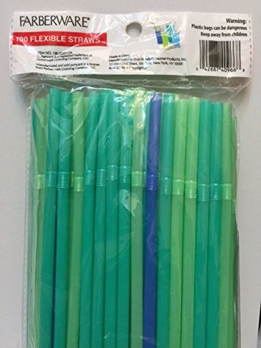 Blue and Green Flexible Drinking Straws 100 Count